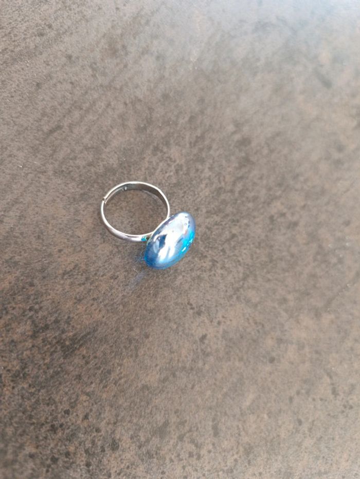 Bague réglable avec pierre en verre bleue