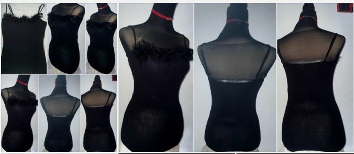 Top debardeur bretelles réglables , avec plumes style boa à l avant coton colori noir T 16 ans (Xs)7euros