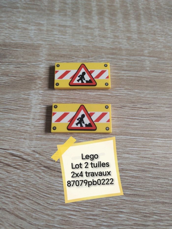 Lego lot 2 tuiles 2x4 travaux 87079pb0222 - photo numéro 1