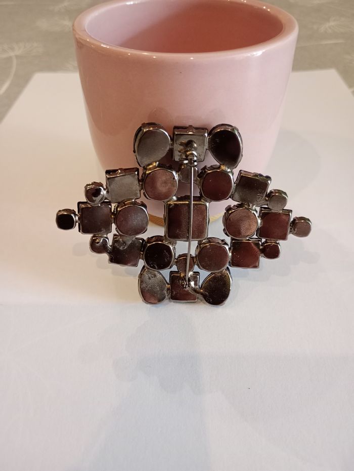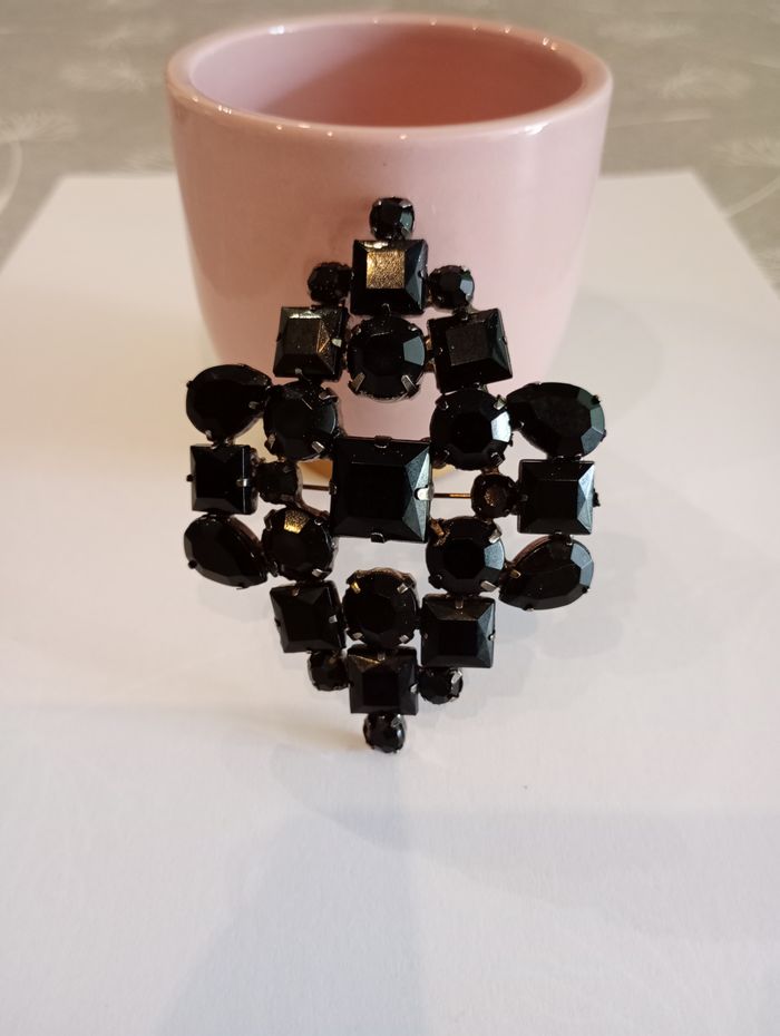 Broche avec fausses pierres noires. 8 x 6 cm. Très bon état