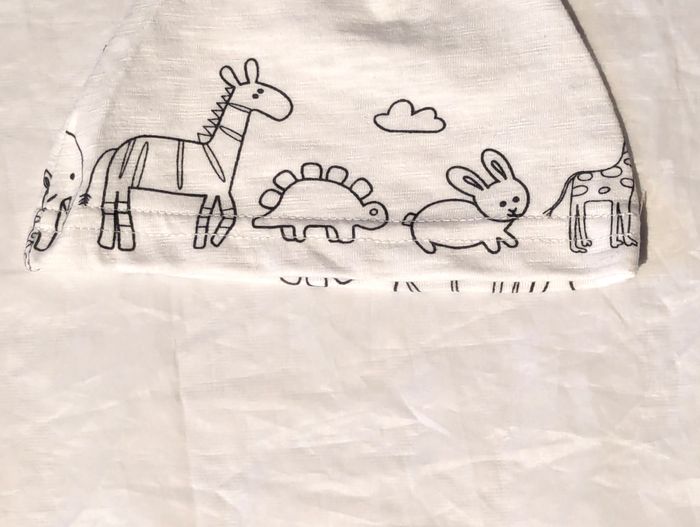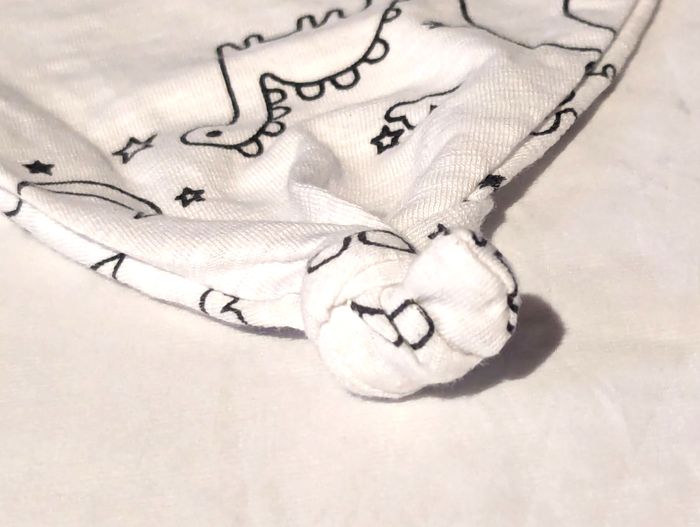 Petit Bonnet Blanc avec un Noeud en Pointe Dessus et des Petits Dessins d'Animaux Vêtement "Animal - Faune". Accessoire pour les Petits Enfants et les Bébés. ☑ "Petit" Bonnet. ☑ Noeud "Pointe". ☑ Petits Dessins "Animaux". ☑ Animal - Faune. Spécifications: Dimensions du Bonnet (Plié): Env. 18 x 18 cm Dimension du Bas du Bonnet (Plié): Env. 18 cm Taille du Bonnet: Env. 11 cm de Diamètre Intérieur Couleur Dominante: Blanc Couleur des Petits Dessins (Animaux): Noir NB. La Taille du Bonnet est Approximative car il n' y a pas d'Etiquette Présente. (J'ai essayé de mesurer le diamètre intérieur). Il n'y a que la Taille du Bas du Bonnet (Plié) qui est EXACTE. Donc la Sélection de la Taille dans les Options du Produit peut être Fausse. Réf: ve42