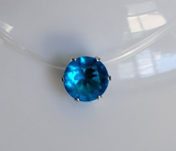 ras de cou fil transparent collier fil souple transparent strass bleu. Longueur du fil : 40 cms. ( + 4 cms de chainette ajustable)Diametre du strass: 0,8 cms . N'hésitez pas à regarder mes autres ventes. ( beaucoup de modeles disponible). Envoi rapide et soigné.