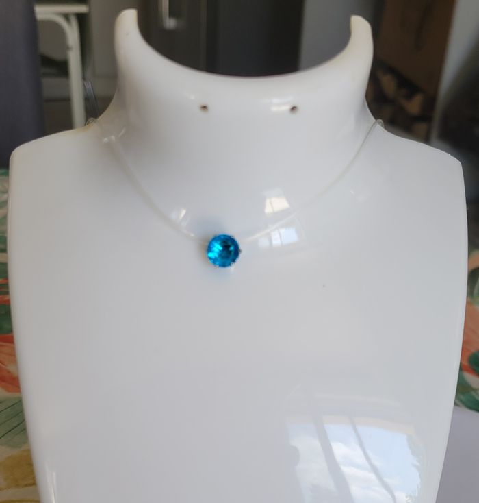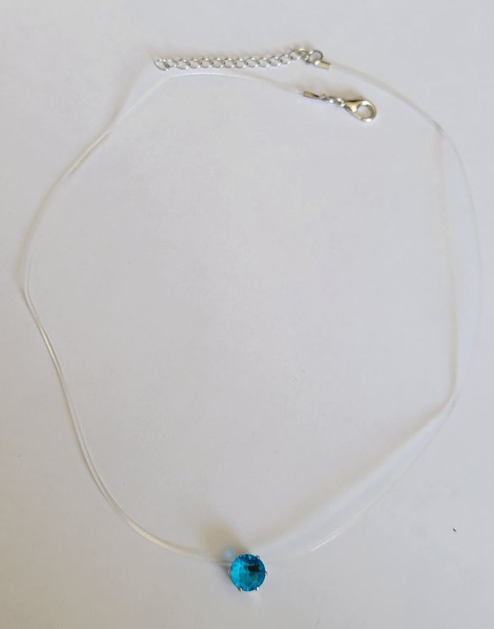 RAS DE COU FIL TRANSPARENT STRASS BLEU ! NEUF! - photo numéro 3