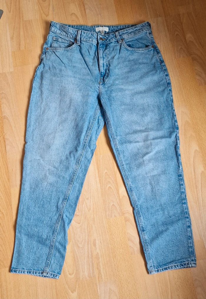 Jean H&M 44 Taille 42 cm , cuisses 34 cm , hanches 58 cm , longueur 98 cm , largeur bas de pantalon 16 , 5 cm