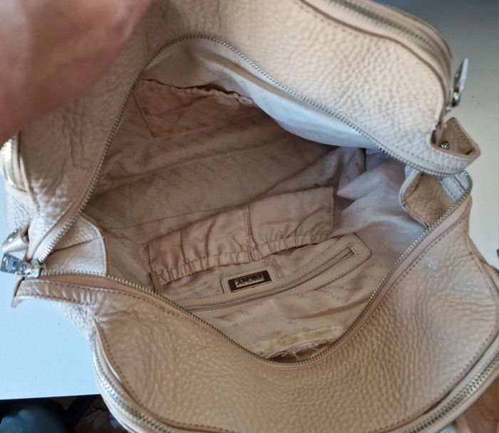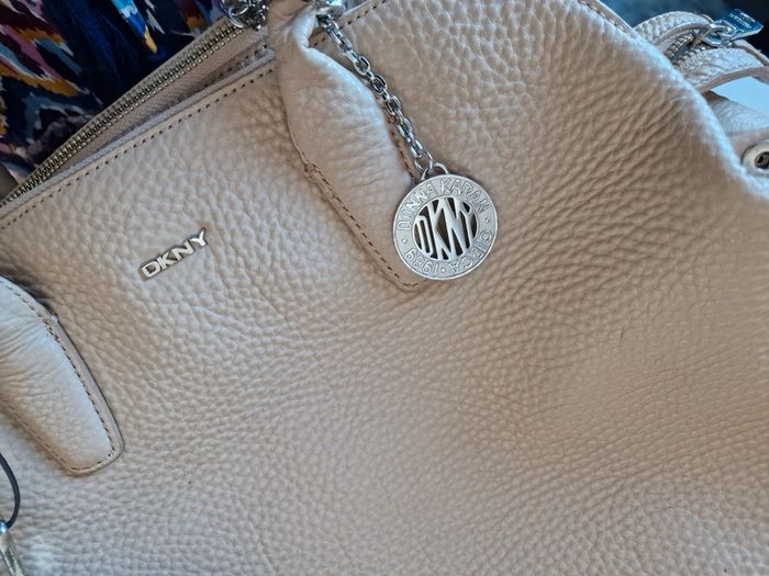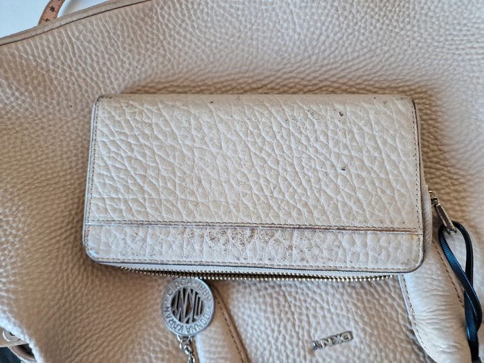 Lot DKNY en cuir beige Sac à main 37 x 16 x 28 cm Portefeuille 19 x 11 cm État moyen