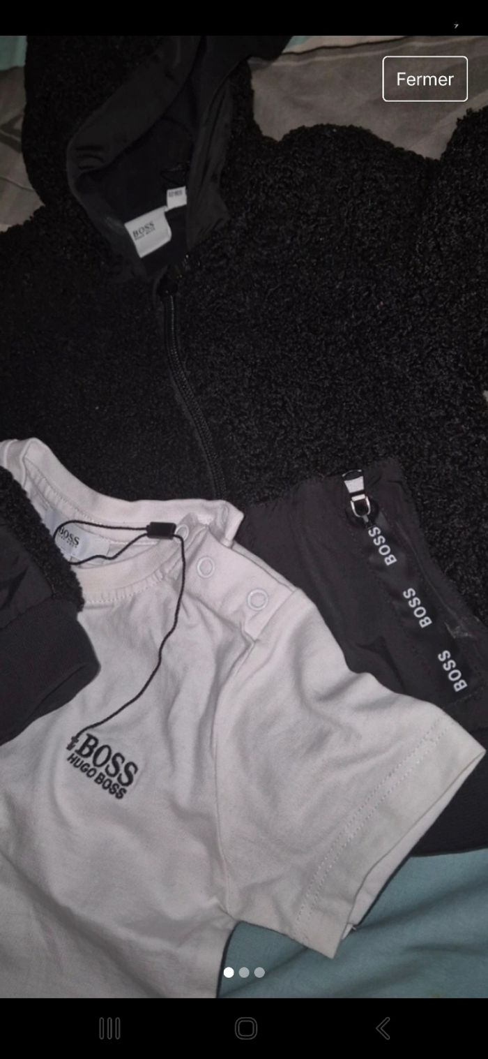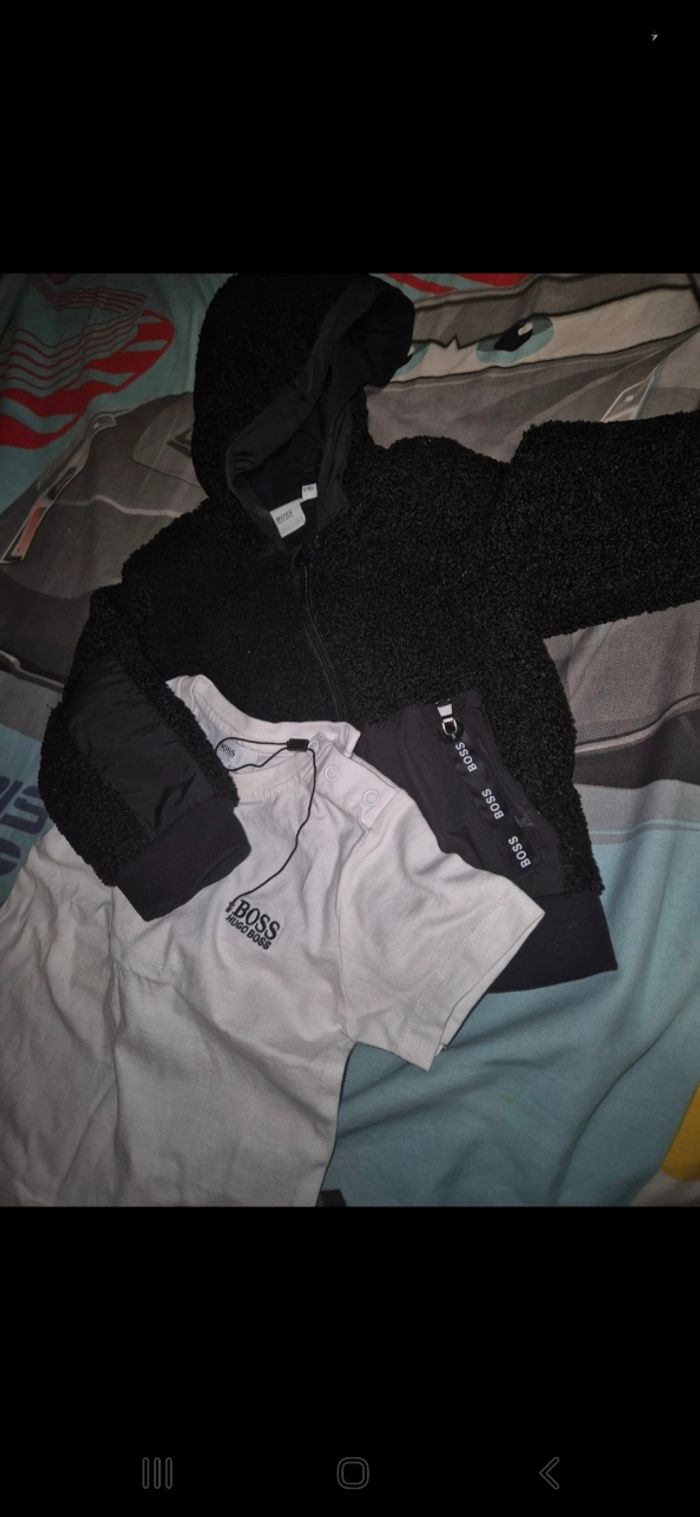 Vend ensemble neuve . Juste laver. 18mous 2 ans . Parfait état 😇 veste et t shirt hugo bosse