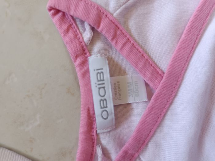 Lot de 4 bodies manches courtes bébé fille. Taille 3 mois. 3 de marque Kiabi 1 de marque obaibi Très bon état. Ni tâches ni trous. Maison non fumeur.