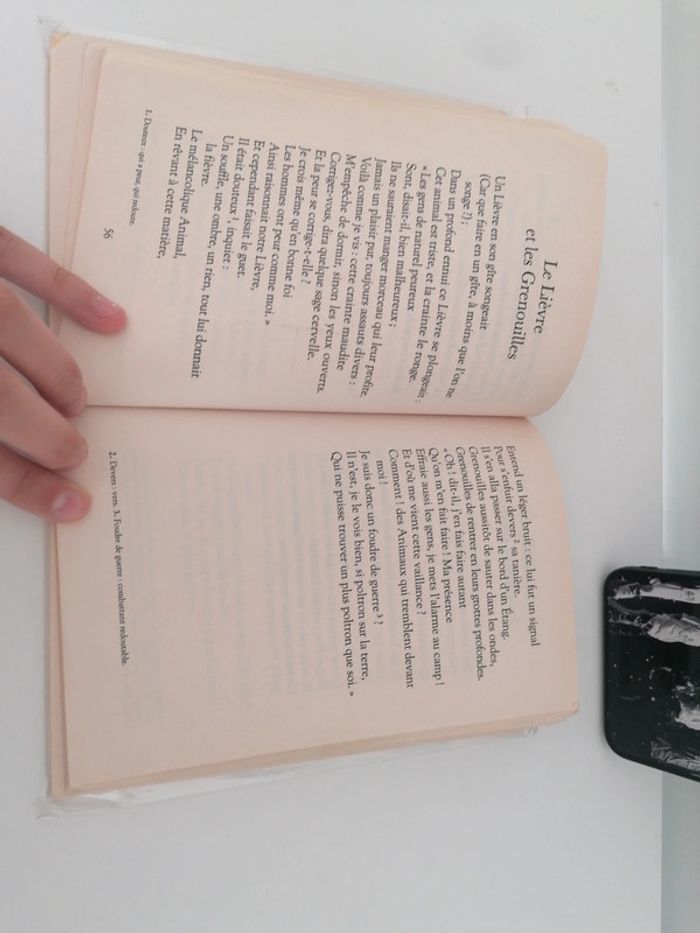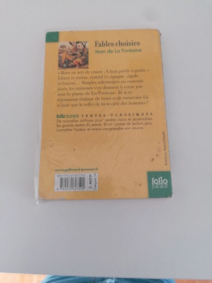 Ce livre nommé fables choisies de Jean de La Fontaine est couvert et légèrement abîmé
