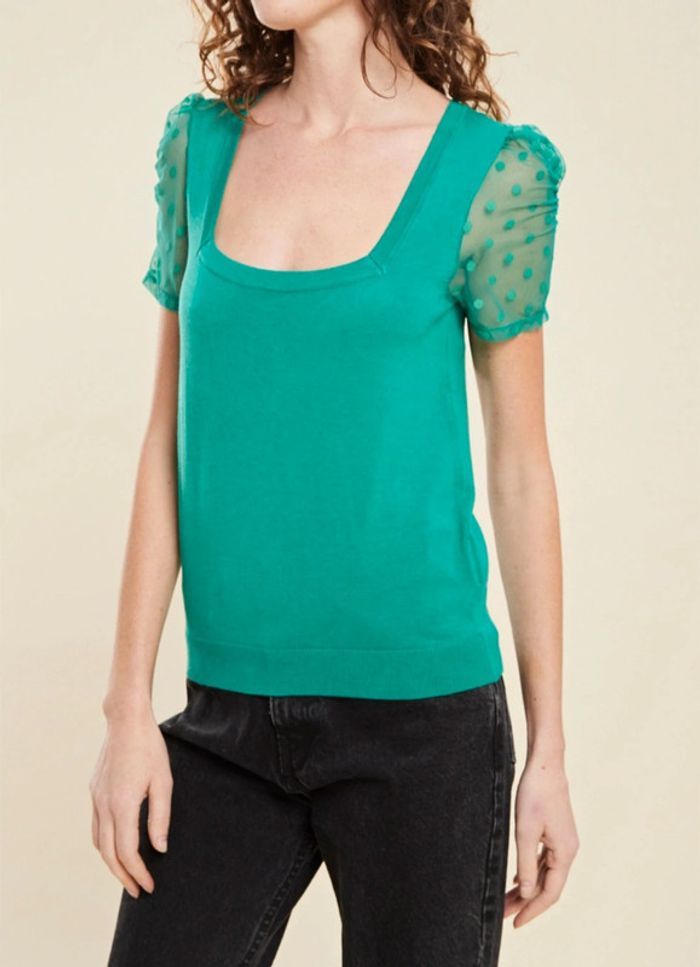 T-shirt paille manches courtes plumetis vert taille 36 Naf Naf