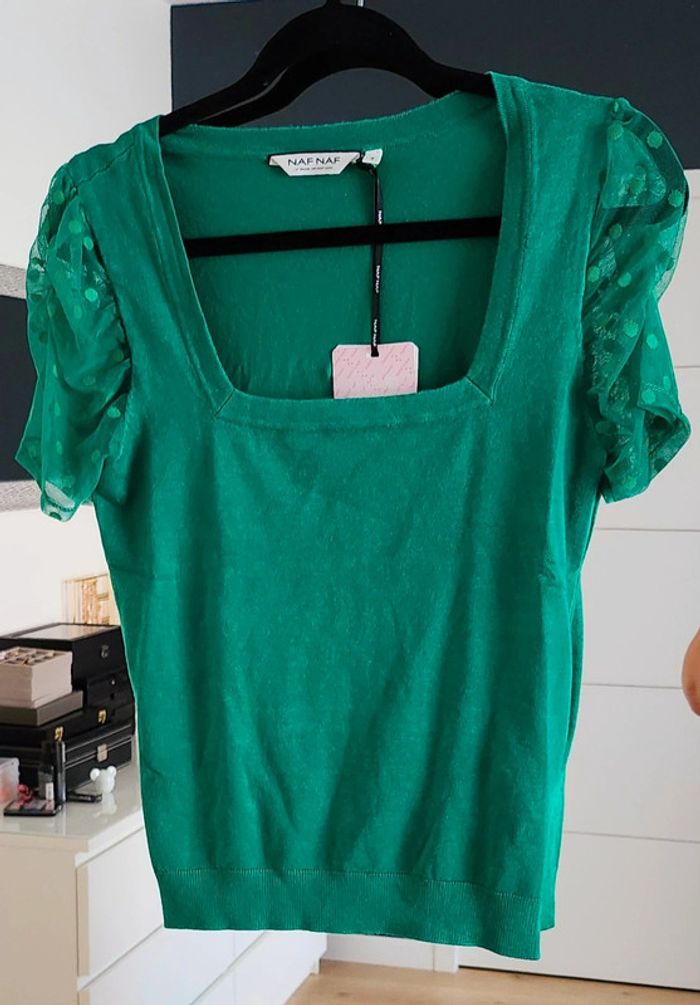 T-shirt paille manches courtes plumetis vert taille 36 Naf Naf - photo numéro 1