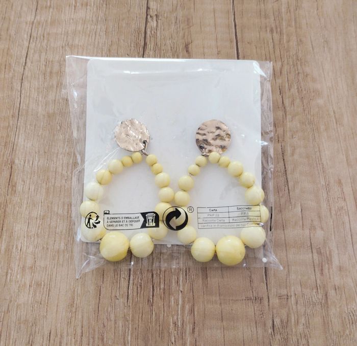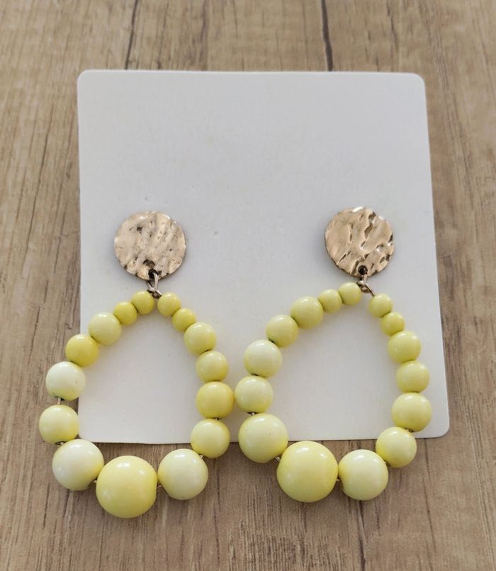 Boucles d'oreilles pendantes perles jaunes et doré - photo numéro 1