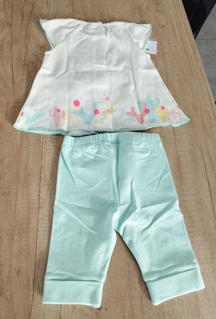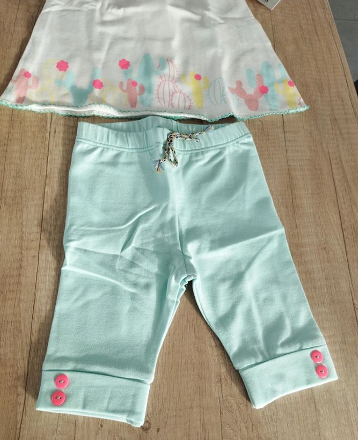 Ensemble fille été legging turquoise clair et t-shirt manches courtes taille 6 mois 3 Pommes