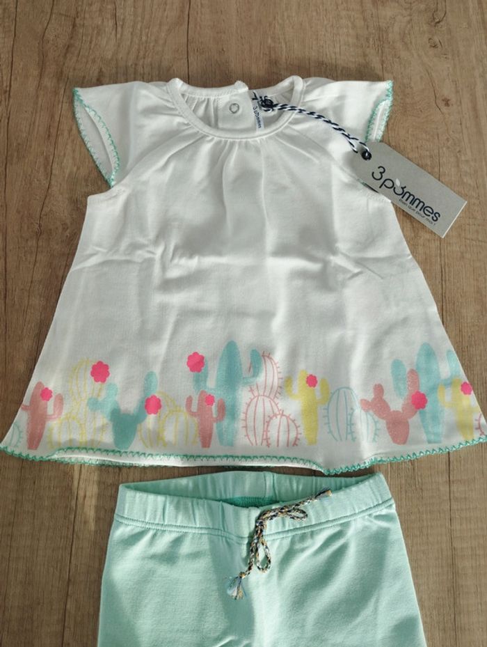 Ensemble fille été legging turquoise clair et t-shirt manches courtes taille 6 mois 3 Pommes - photo numéro 1