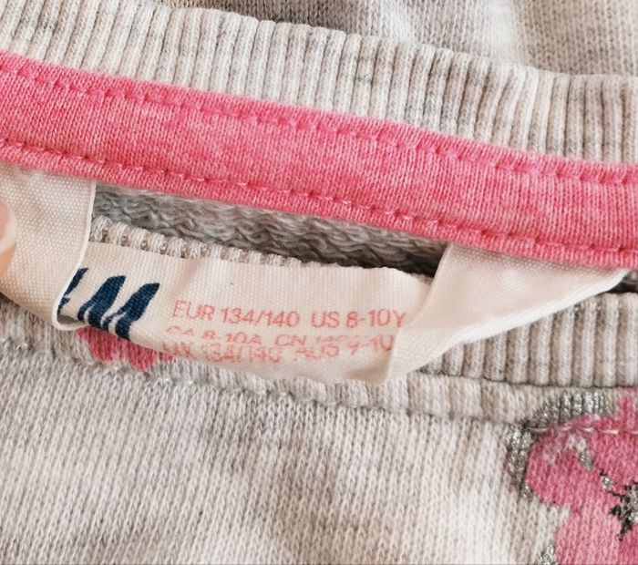 Pull fille gris clair et fleurs roses taille 9/10 ans H&M - photo numéro 2