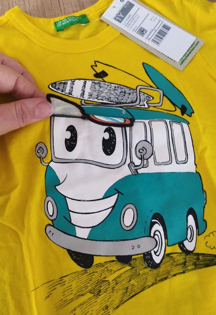 T-shirt manches courtes garçon jaune bus turquoise taille 12/24 mois United Colors of Benetton - photo numéro 3