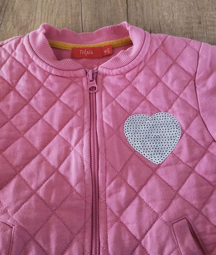 Gilet zippé fille rose coeur sequins taille 6 ans Tissaia