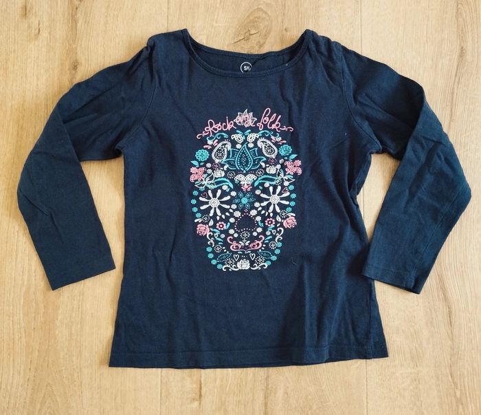T-shirt manches longues bleu marine taille 5/6 ans - photo numéro 1