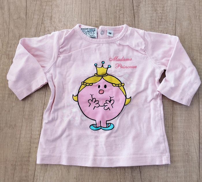 T-shirt manches longues fille rose taille 6 mois Monsieur Madame - photo numéro 1