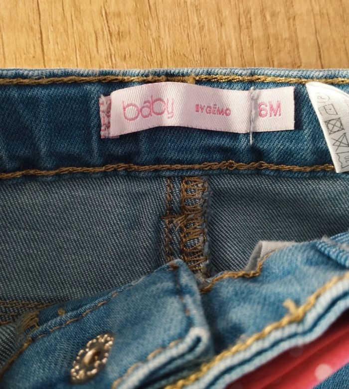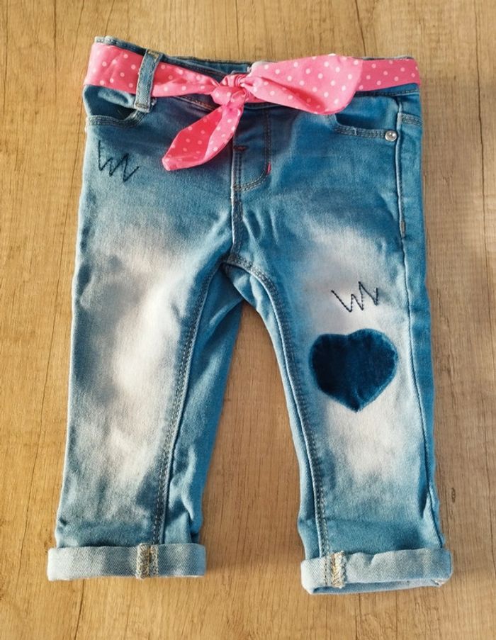 Jean fille bleu coeur et ceinture taille 6 mois Gémo - photo numéro 1