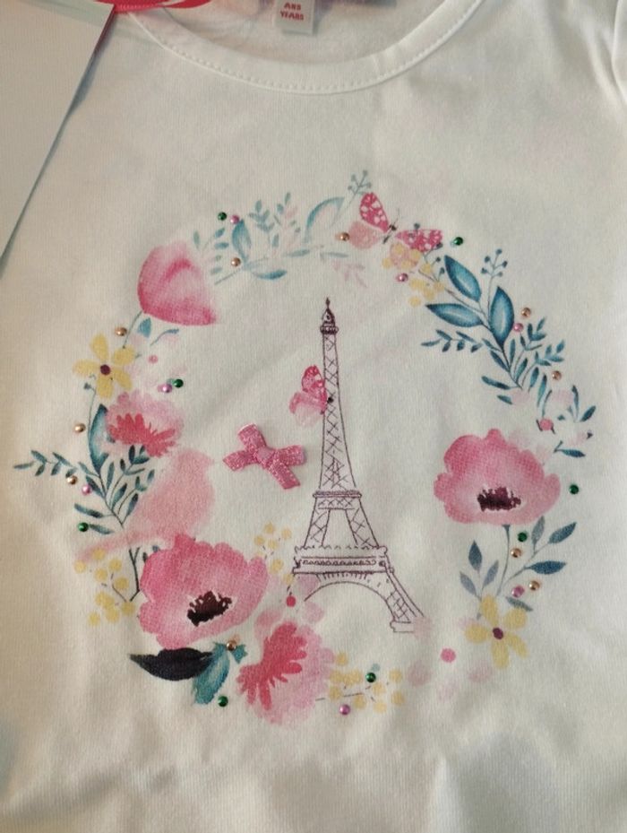 T-shirt manches courtes fille blanc et rose tour Eiffel 12 mois Lili Gaufrette - photo numéro 3