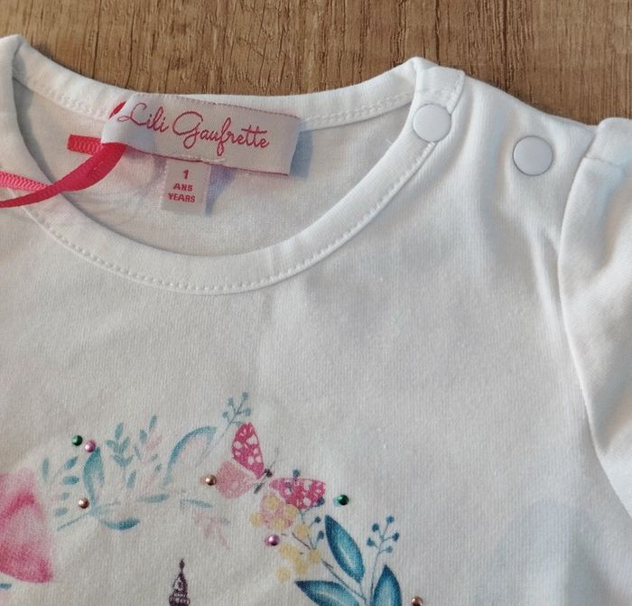 T-shirt manches courtes fille blanc et rose tour Eiffel 12 mois Lili Gaufrette - photo numéro 2