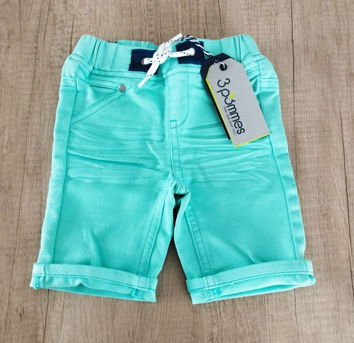 Short bermuda jean garçon turquoise taille 6/9 mois 3 Pommes - photo numéro 1