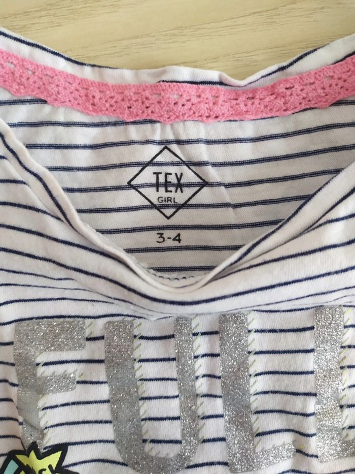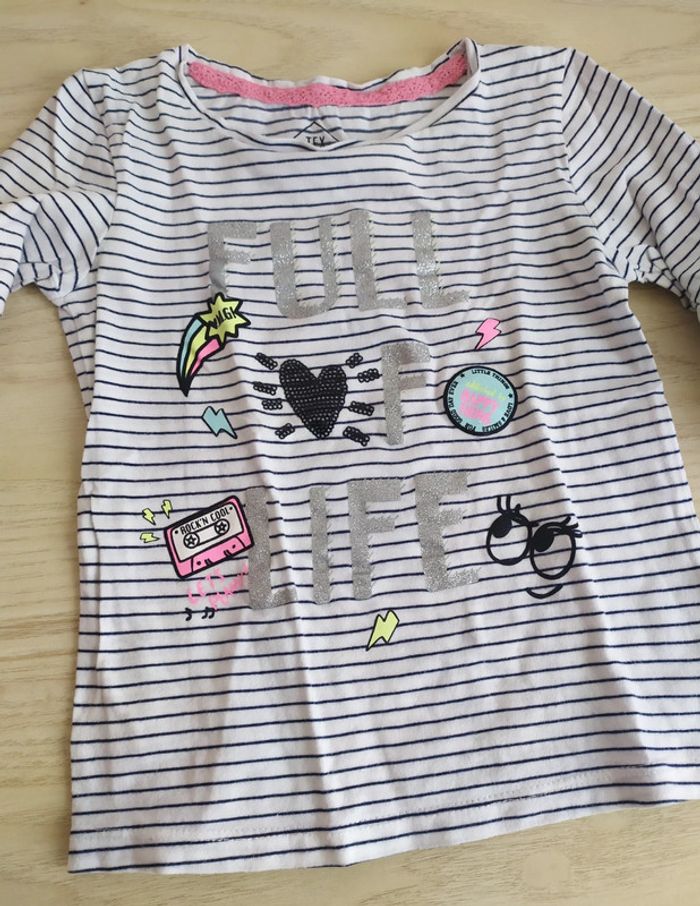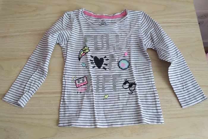T-shirt manches longues fille blanc rayures noires girly taille 3/4 ans Tex