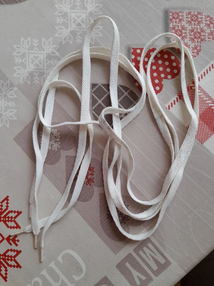 Lacets Photo 1 - 75 cm - noir Neuf jamais utilisé Photo 2 - 140 cm - blanc déjà utilisé 1 euro l'unité 2 euros le lot
