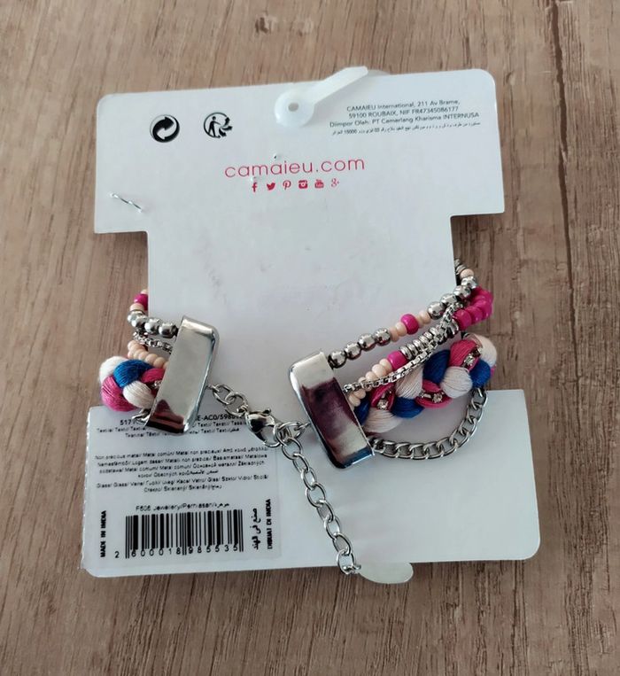 Bracelet fantaisie rose bleu et blanc Camaïeu