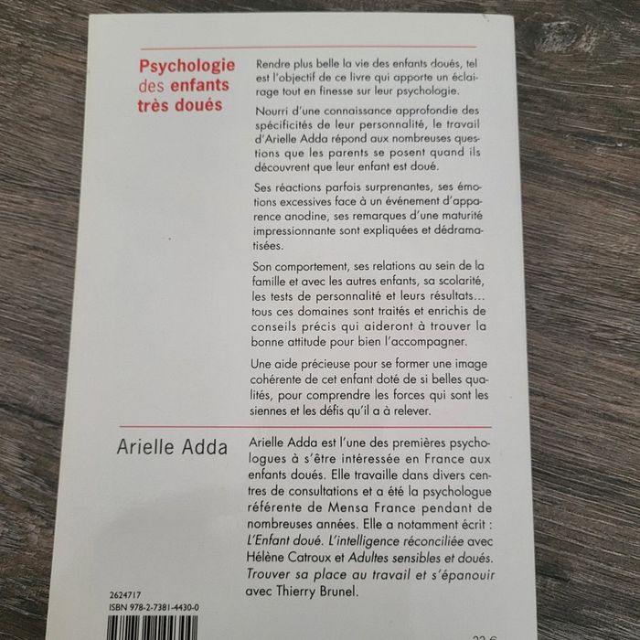 Arielle Adda Psychologie des enfants très doués En excellent état Ce livre m a beaucoup aidé à comprendre la psychologie de mon fils et m'a permis de l accompagner dans son développement d une façon plus bienveillante