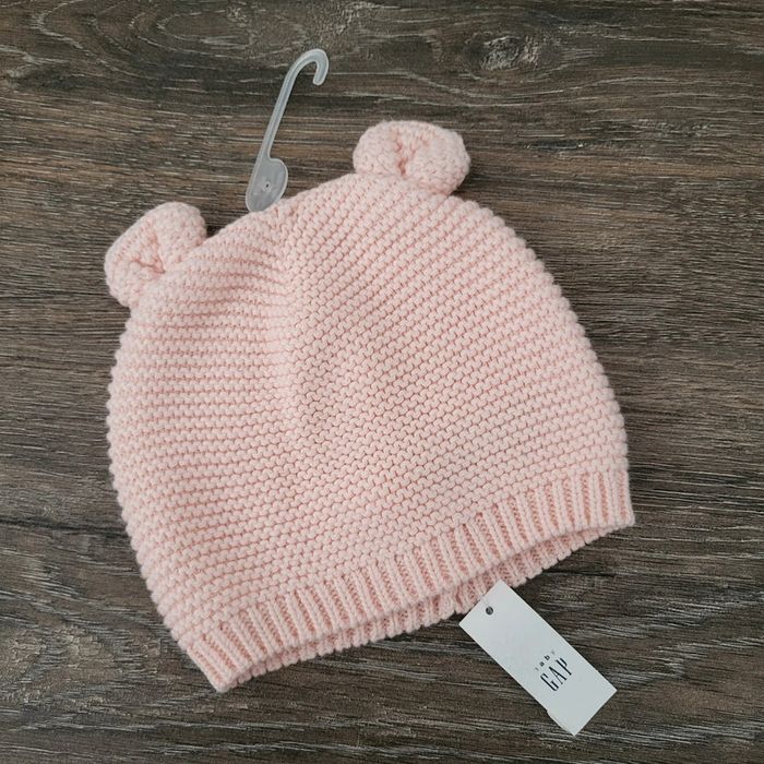 Baby Gap Taille 3-6 mois Bonnet en coton rose avec petites oreilles Neuf avec étiquette
