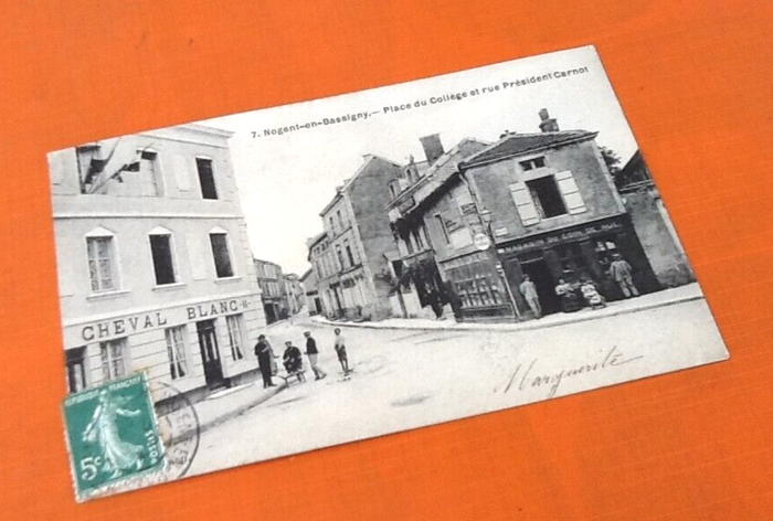 Carte postale ancienne Nogent- en Bassigny (Haute-Marne) Place du Collège et rue du Président Carnot