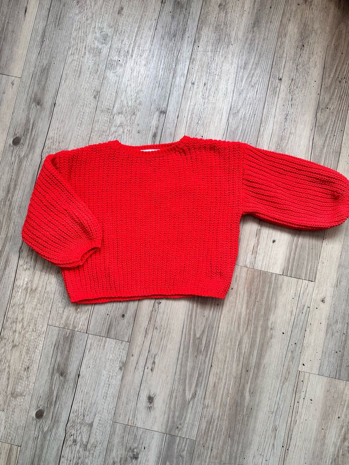 Pull grosse maille tricot rouge vif 2/4 ans h&m fille - photo numéro 1