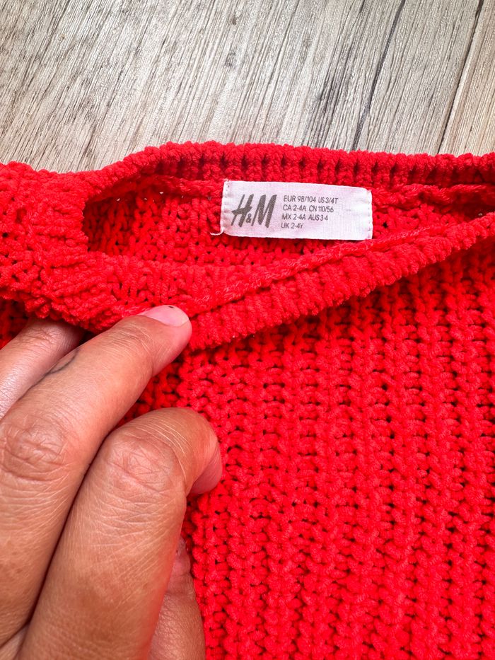 Pull grosse maille tricot rouge vif 2/4 ans h&m fille - photo numéro 3