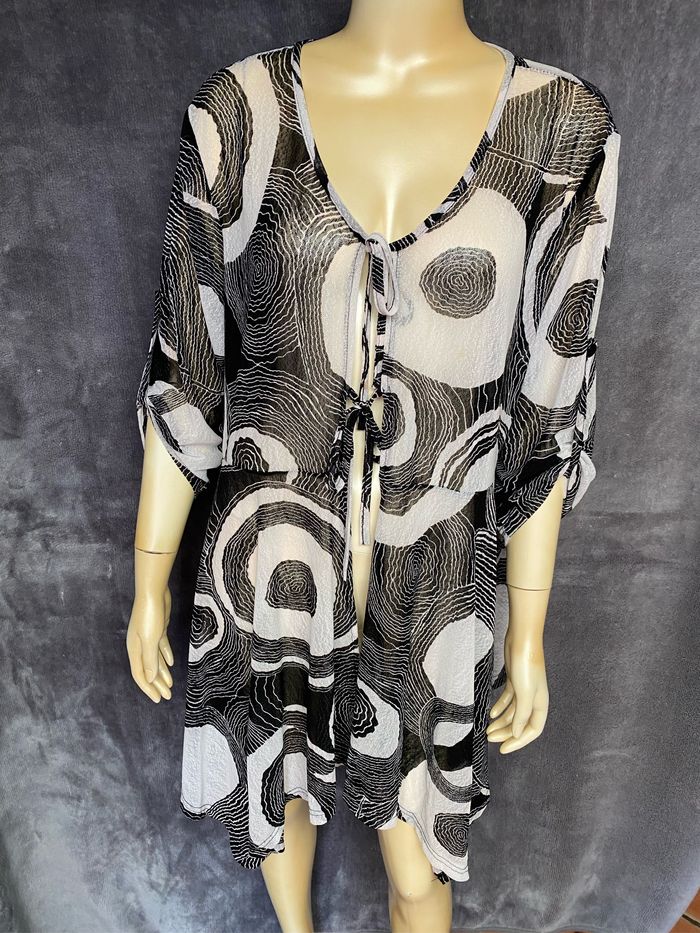 Longue veste transparente  légère noir et blanc C’Melodie taille XL - photo numéro 1