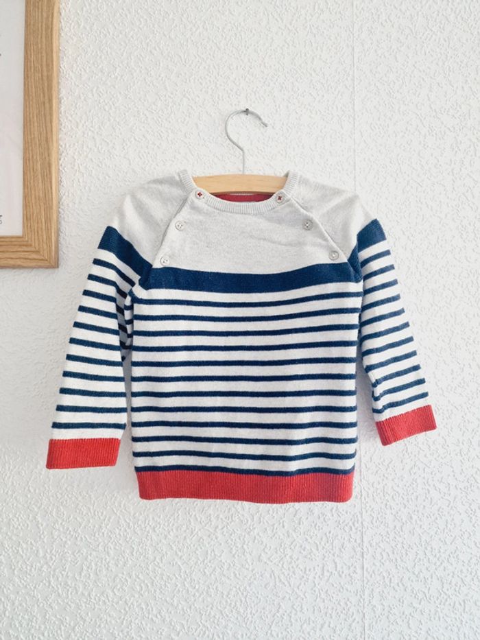 Obaïbi - Pull marinière en laine, manches longues, col rond (18 mois)