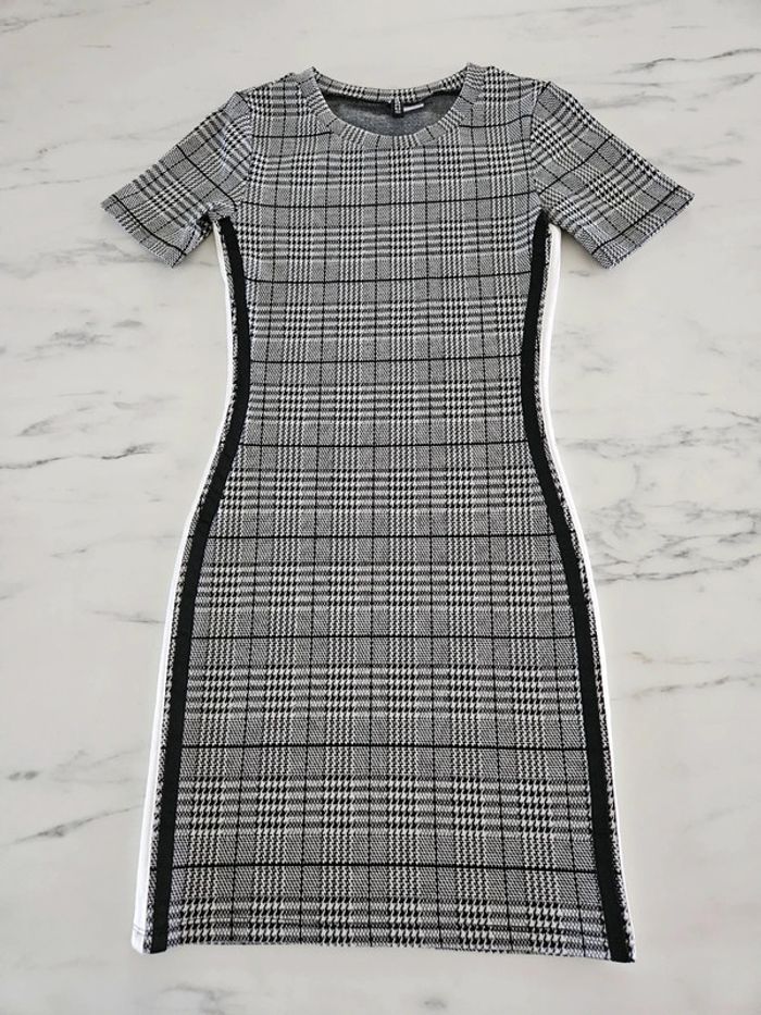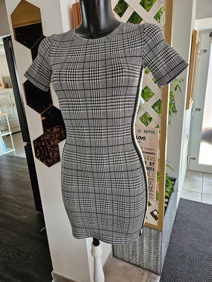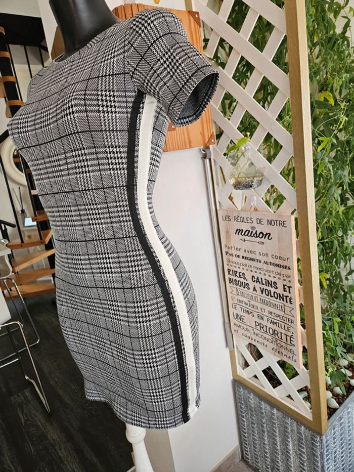 Robe courte lignée. Portée mais reste en très bon état. Les dimensions se trouvent sur les photos