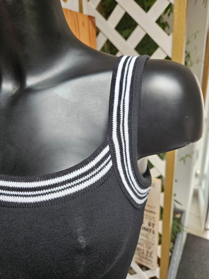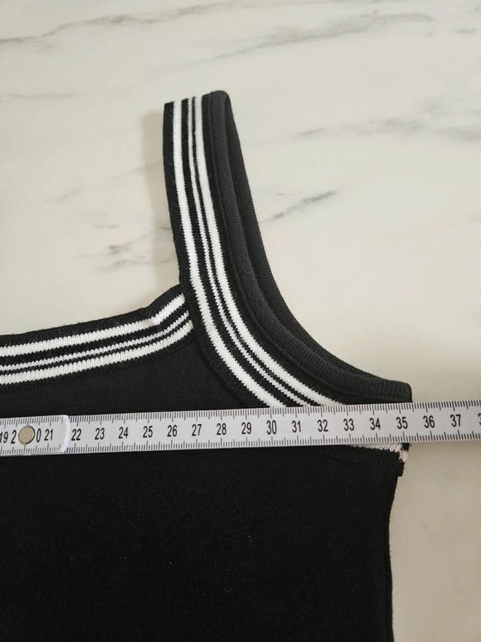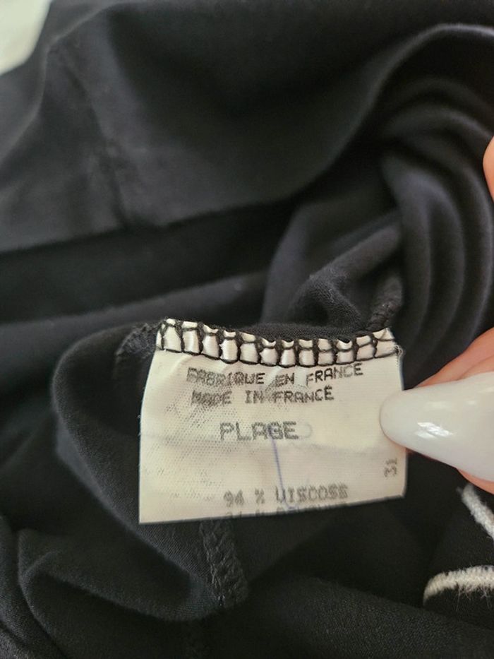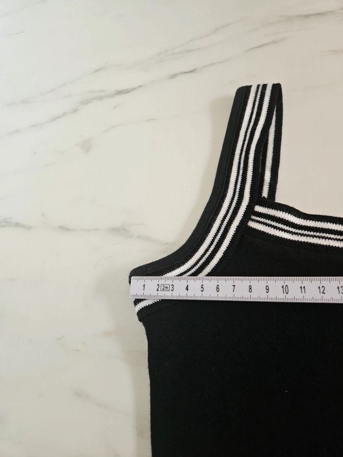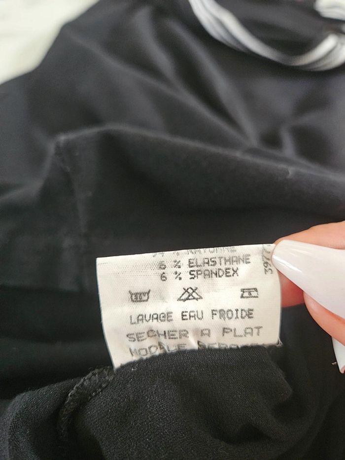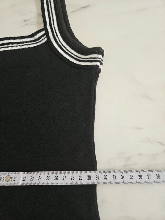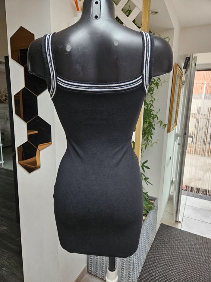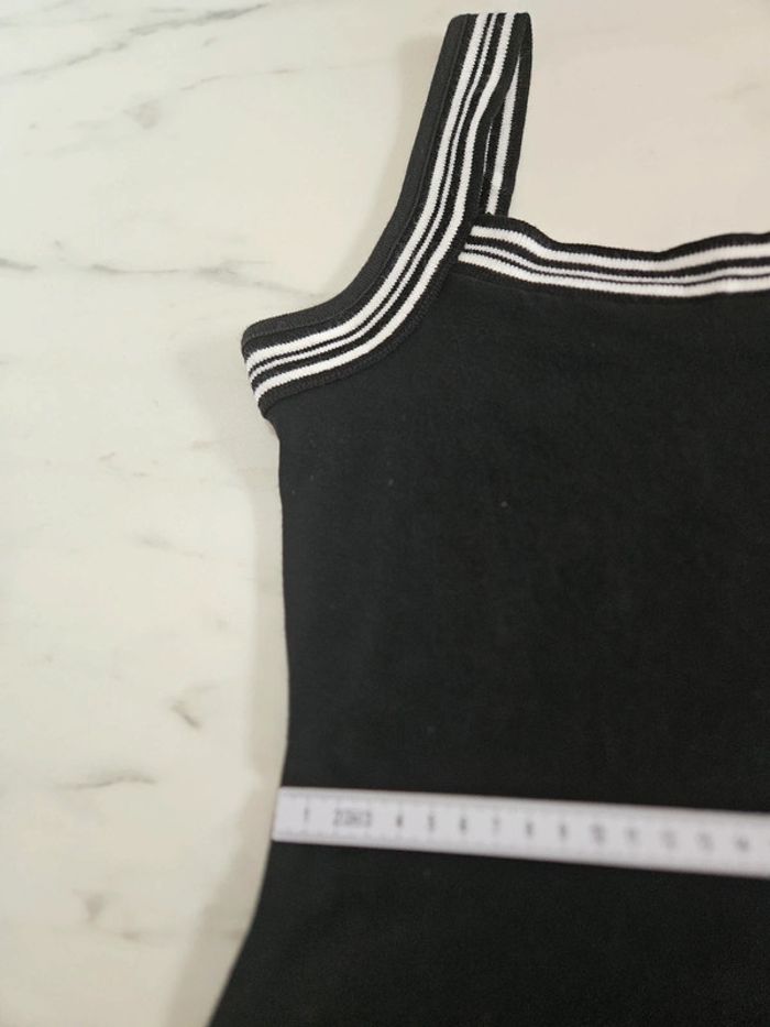 Robe noir avec détails et marque brodée en blanc. Elle est dans un état irréprochable. Bien bien noir. Pas d'étiquette de taille mais correspond à un S. La matière est extensible et les dimensions se trouvent sur les photos