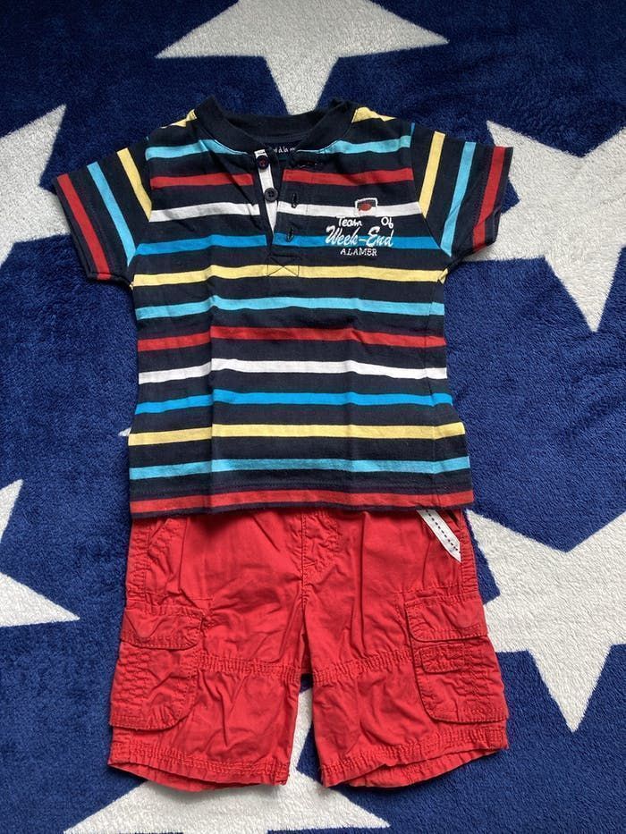 Bonjour, Je vends ce joli ensemble de la marque week-end à la mer, composé de : 1 t-shirt manche courte aux jolies rayures 1 short rouge dont la taille peut être ajustée. D’autres photos ou informations possibles D’autres articles 6 mois dans mon dressing (dressing du 0 au 8 ans) (FlopacaBoîte 3) Envoi via mondial Relay, relais colis ou chronopost : les 3 types de transports sont disponibles près de chez moi.