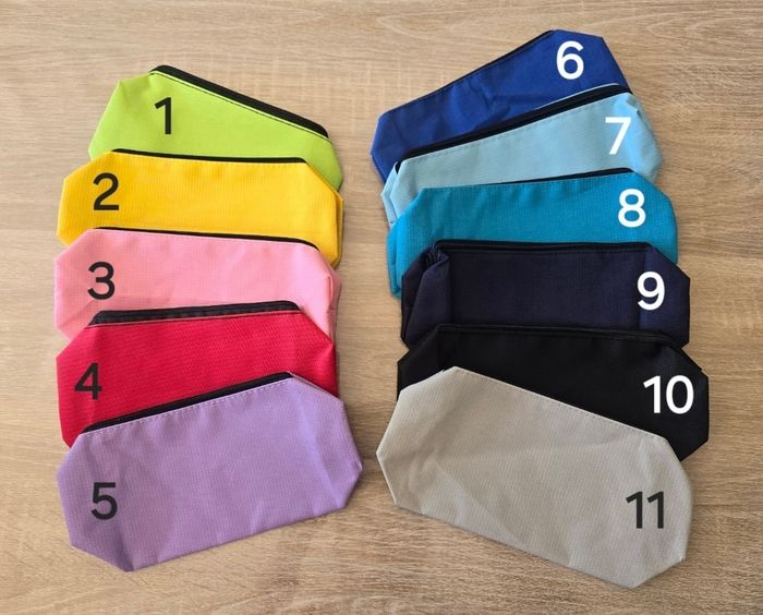 Trousse personnalisée avec prénom de votre choix dispo en noir, rose, bleu turquoise, bleu marine, gris clair, violet clair, jaune, rouge, bleu clair, bleu électrique et bleu clair. Écriture et couleur du prénom de votre choix, me mp pour voir ensemble la personnalisation Taille 22*6*5cm envoi rapide