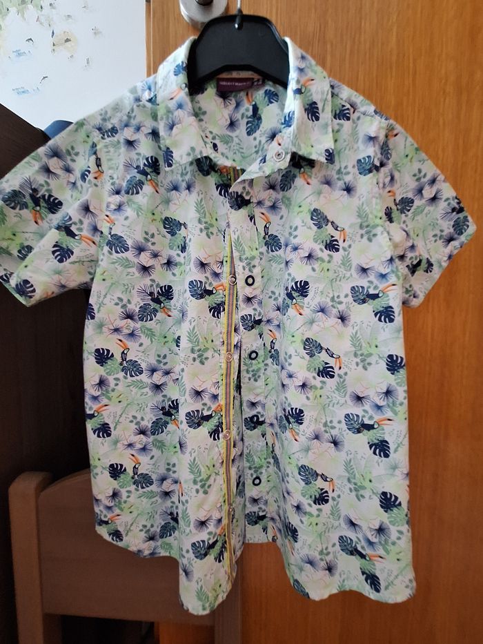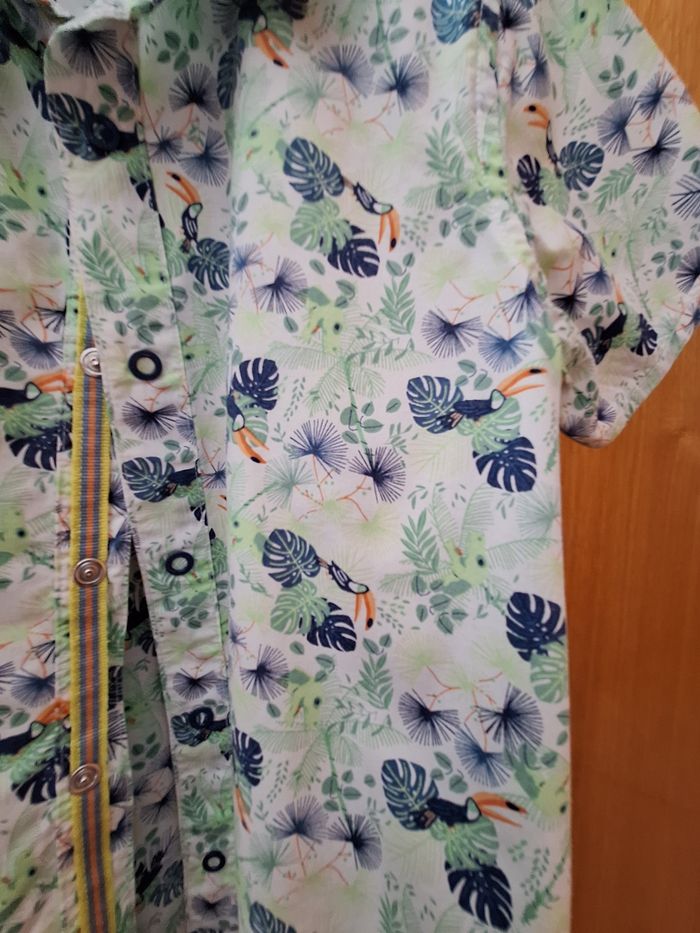 Chemise manches courtes, fermeture pressions, joli motif estival