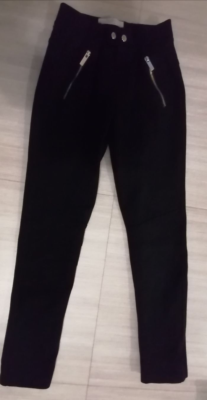 Pantalon fille Marque Zara Âge 9/10ans Couleur noir 2 fausse poches avec fermeture sur les côtés Taille élastique non réglable Porté, aucune tache 6€