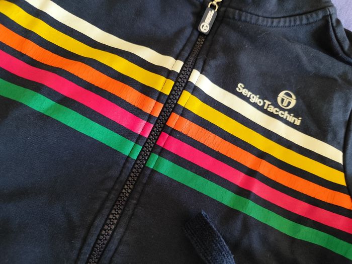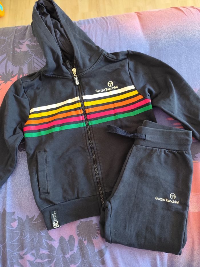 Ensemble survêtement Sergio Tacchini, veste + jogging. État correct, trace d'usure sur les flocages. Taille 4ans 104 cm