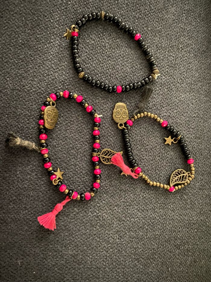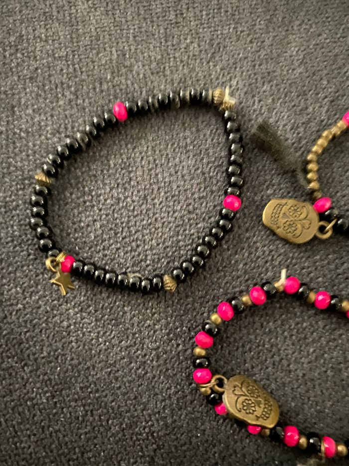 Lot 3 bracelets perles rose/noir/or - photo numéro 1