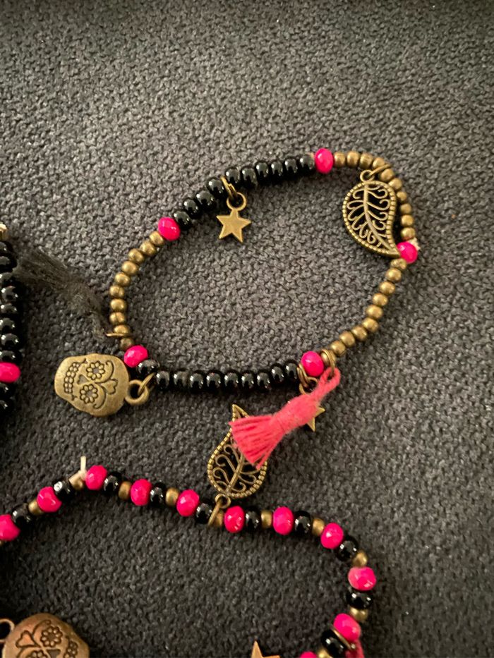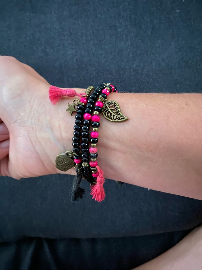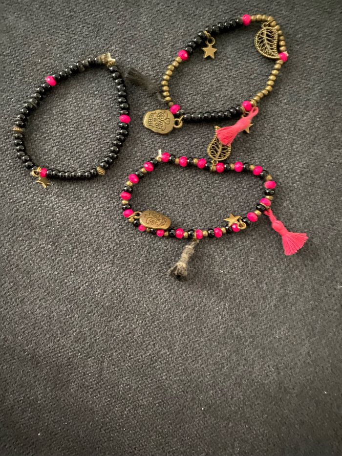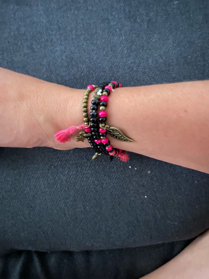 Lot de 3 bracelets en perles rose/noir/or, bracelets elastique. Neuf jamais porté.