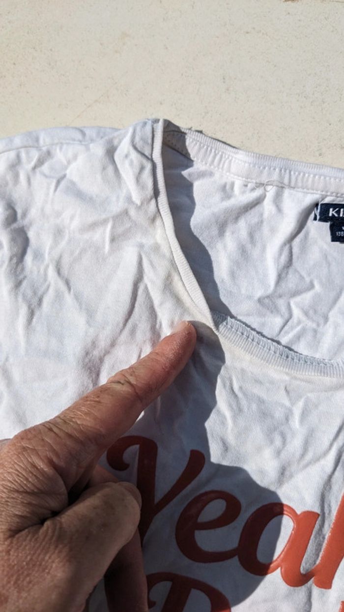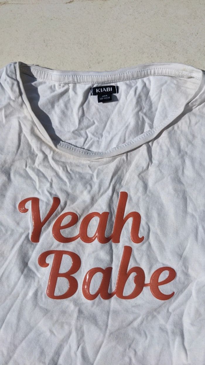 Je donne ce t-shirt fille taille 10 ans marque Kiabi inscription "Yeah babe" en lettres 3D. Petite tache très légère donc cadeau. N'hésitez pas à me demander de l'ajouter à votre colis ☺️ Mes autres annonces fille du même âge #joeypotter91_filledixans