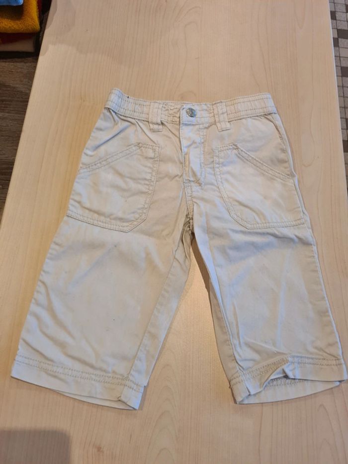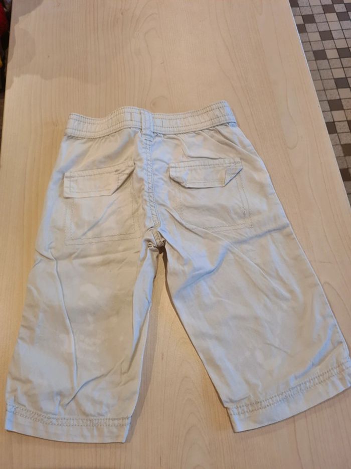 Acheté sur vinted mais jamais porté car les couches lavables ne rentraient pas. 2 poches devant, taille elastiquee. Se ferme avec un bouton pression. Parfait état excepté comme des tâches de javel qui ont décolorés le tissu, je l ai reçu comme ça.