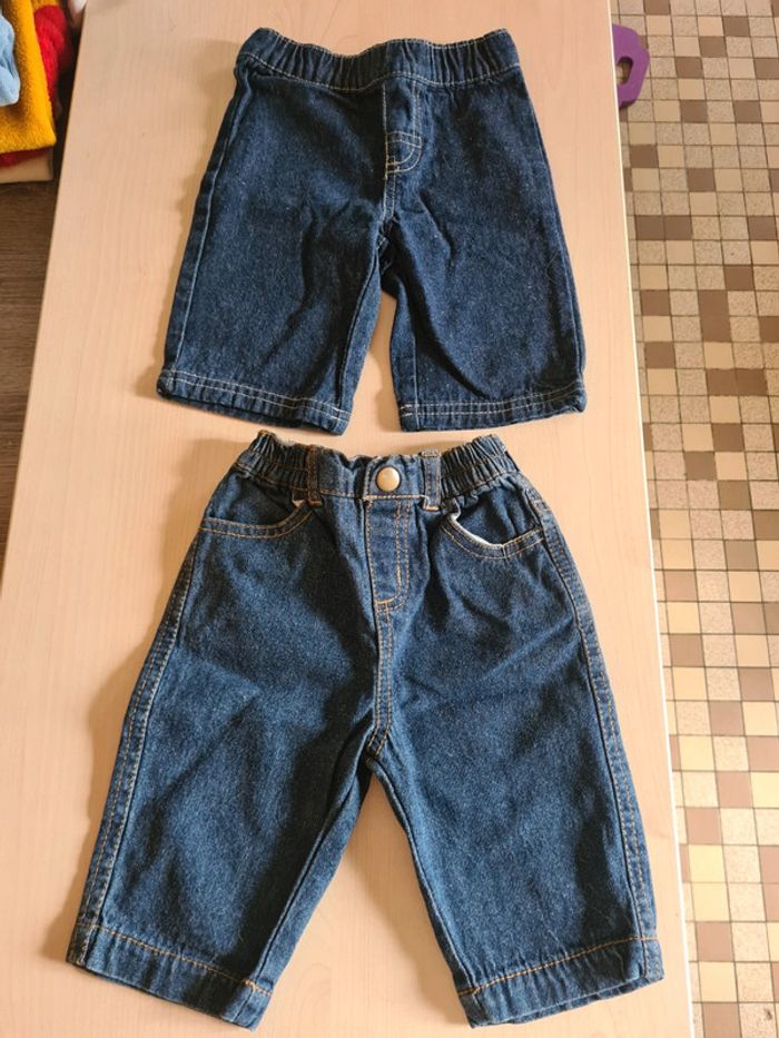 1 Jean in extenso, l autre de marque inconnue. 100% coton Tailles elastiquees 3 mois, 62cm Il y en a un qui se ferme avec un bouton pression et comprend 2 poches devant État impeccable Achetés sur vinted mais jamais portés car les couches lavables ne rentraient pas