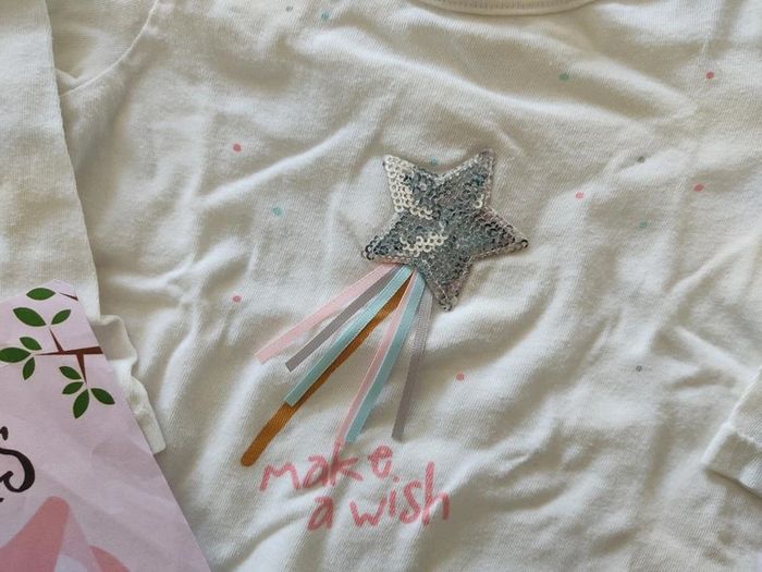 Tee shirt manches longues taille 18 mois. Sequins sur l'étoile et vrais rubans. #ksandra57_fille18mois