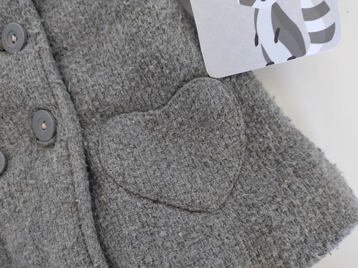 Manteau bien chaud pour l'hiver. Fermeture par 3 boutons. 2 vraies poches en forme de coeur. L'étiquette indique taille 3 mois mais le manteau taille grand comme un 6 mois. #ksandra57_fille3mois #ksandra57_fille6mois